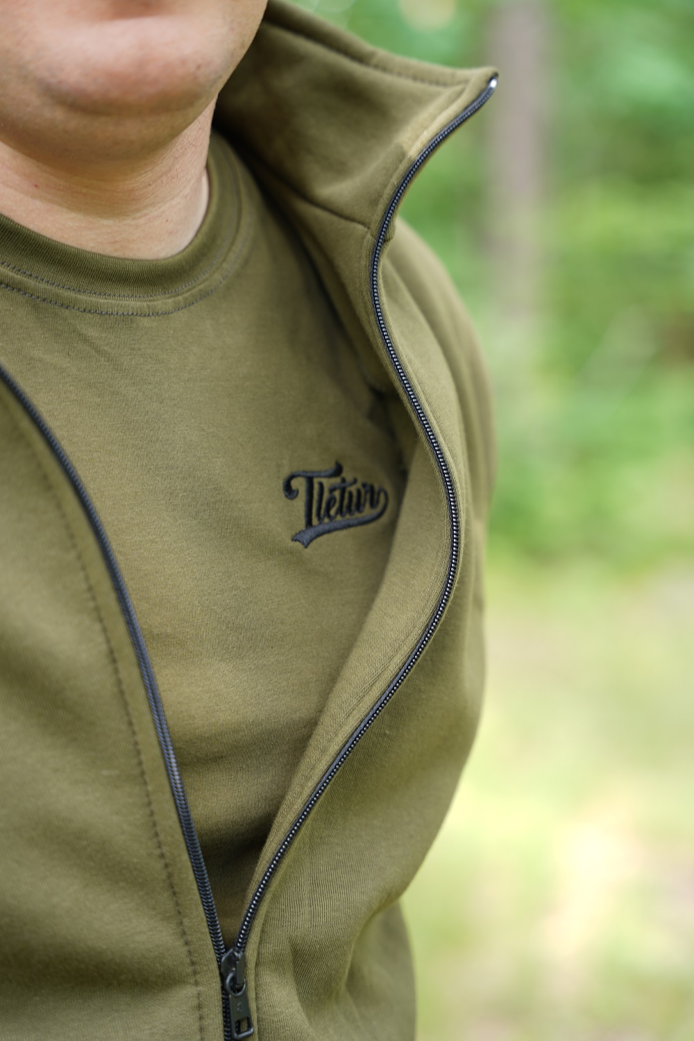 Odkryj naszą wyjątkową bluzę khaki o gramaturze 280g, idealną na każdą okazję. Ta bluza, rozpiana na stójce i bez kaptura, to synonim elegancji i wygody. Przednie kieszenie zapewniają praktyczność, a mały, czarny haft z logo Tletur na piersi dodaje charakteru i klasy. Wnętrze bluzy zdobi taśma z oryginalnym logo Tletur, co podkreśla dbałość o detale i najwyższą jakość wykonania.