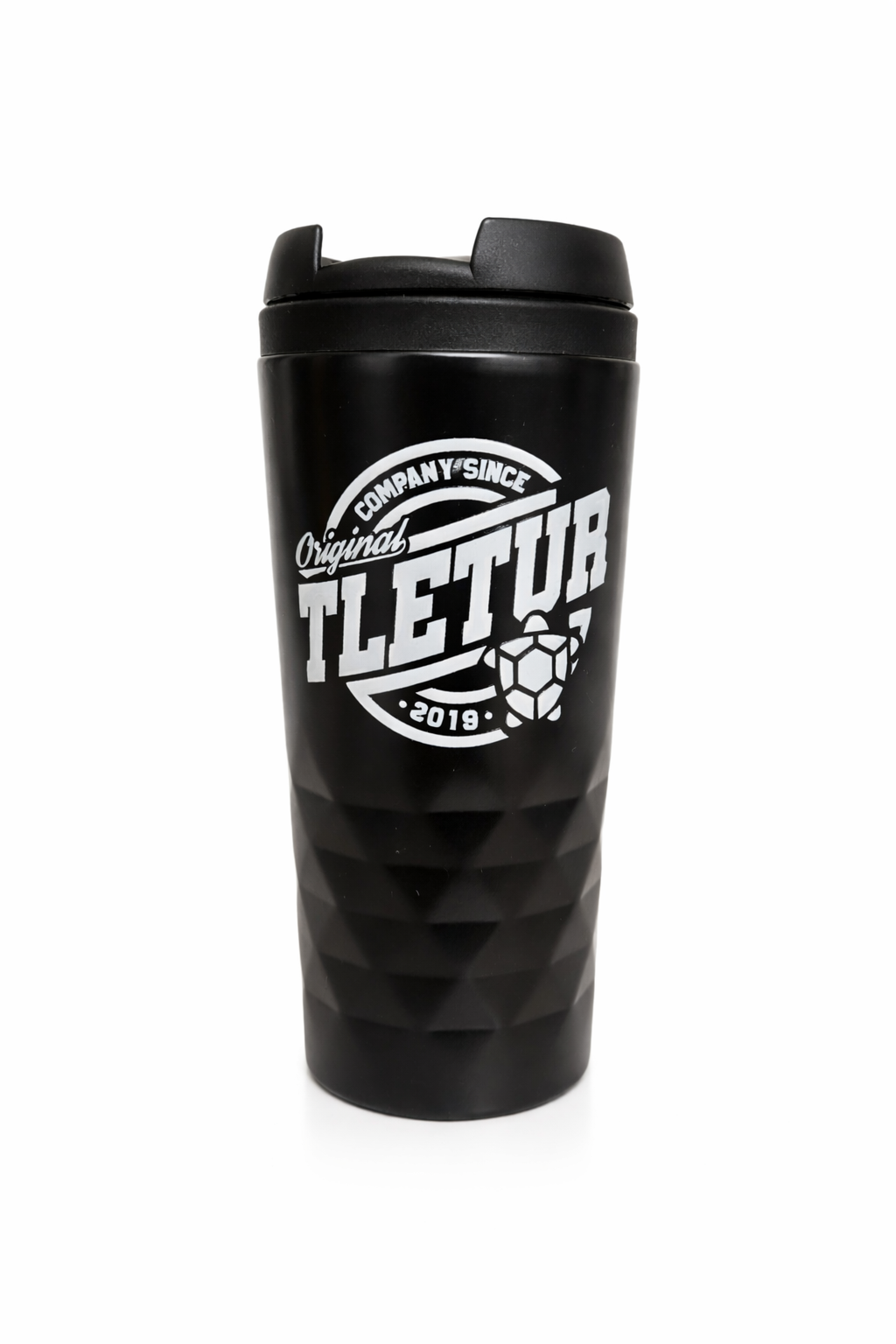 Kubek wyposażony jest w czarne, szczelne wieczko, które chroni przed rozlaniem i ułatwia picie w ruchu. Nowoczesny nadruk UV DTF wyróżnia się wypukłą strukturą, wysoką trwałością oraz odpornością na ścieranie, co nadaje produktowi prestiżowy i unikalny charakter.